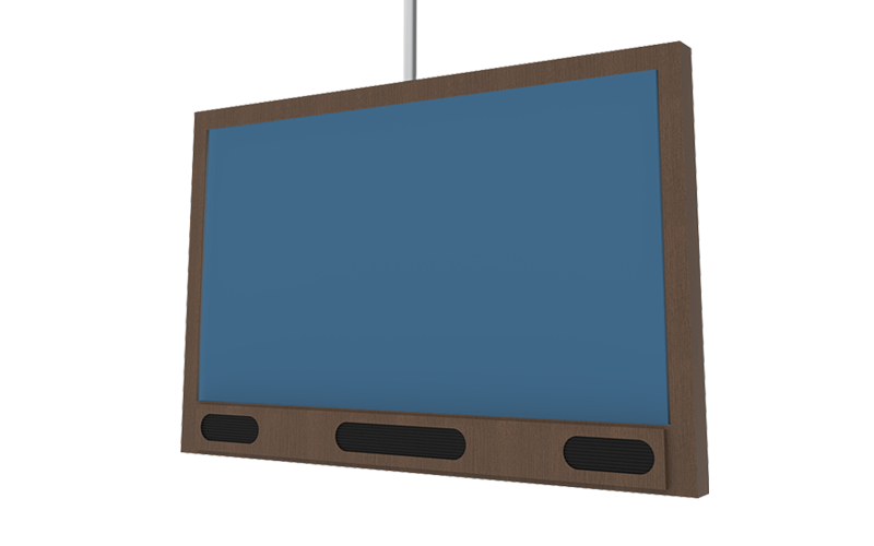 For a more refined aesthetic, display screens can be enclosed in a custom cabinet that also houses speakers, cameras, and wiring. Enclosures can be crafted from a variety of woods and metals to match your interior.